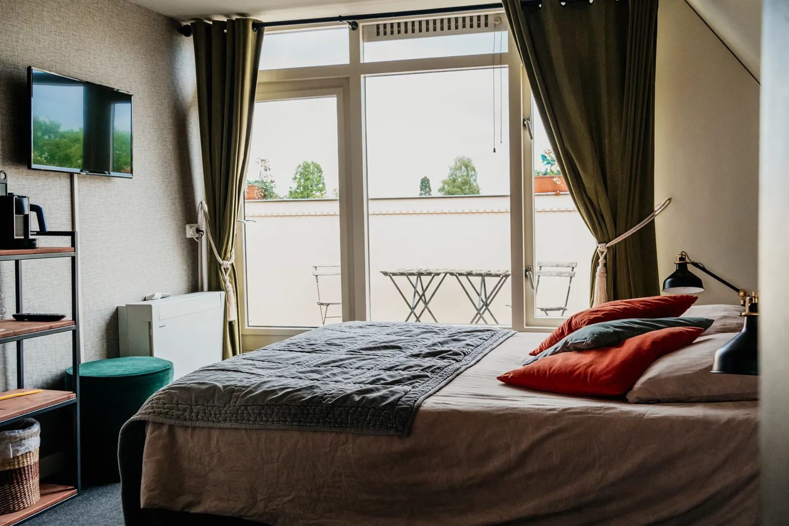 De Kees kamer is rookvrij en met zorg ingericht. Je slaapt op een comfortabele Swiss Sense boxspring die garant staat voor een heerlijke nachtrust. De kamer beschikt over een comfortabele douche, airconditioning, televisie en haardroger. Daarnaast heeft de kamer een fijn balkon, ideaal om even rustig te ontspannen met uitzicht op de omgeving.